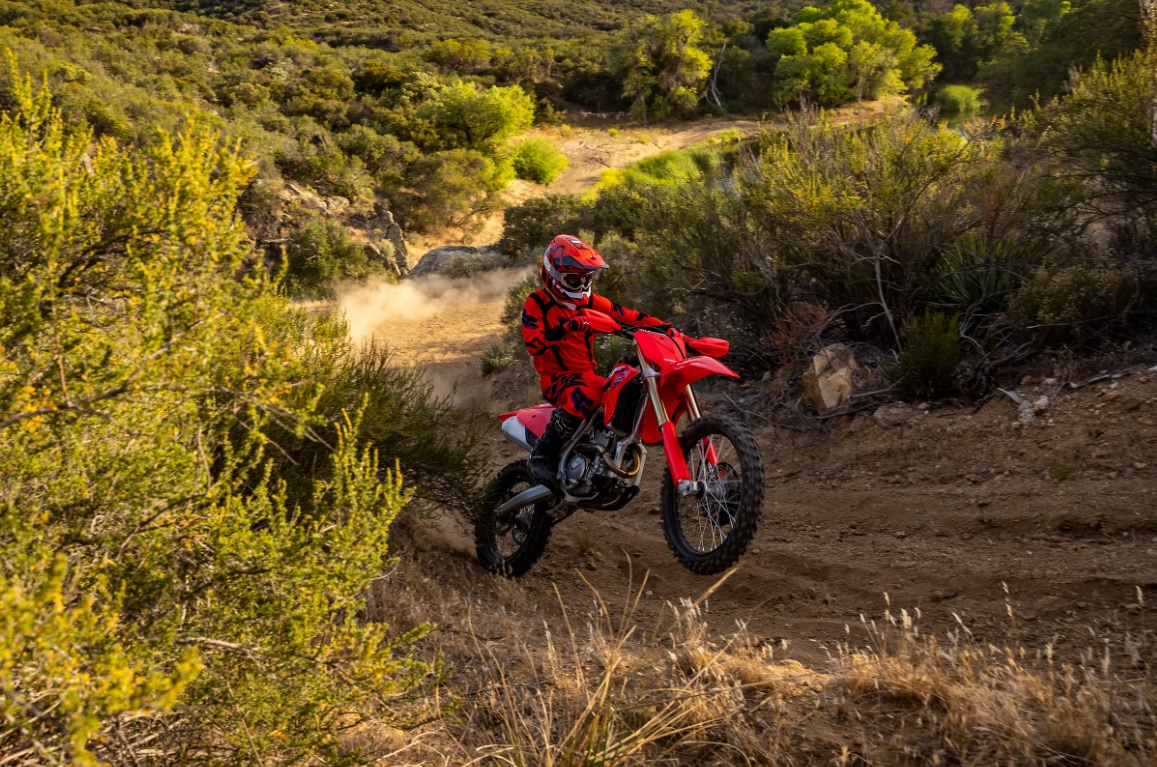 CRF450R/RX CRF250R/RX はオフロード競技専用車として、世界各国のモトクロス、エンデューロレースにて活躍し、その高い戦闘力から多くのライダーに支持されてます。