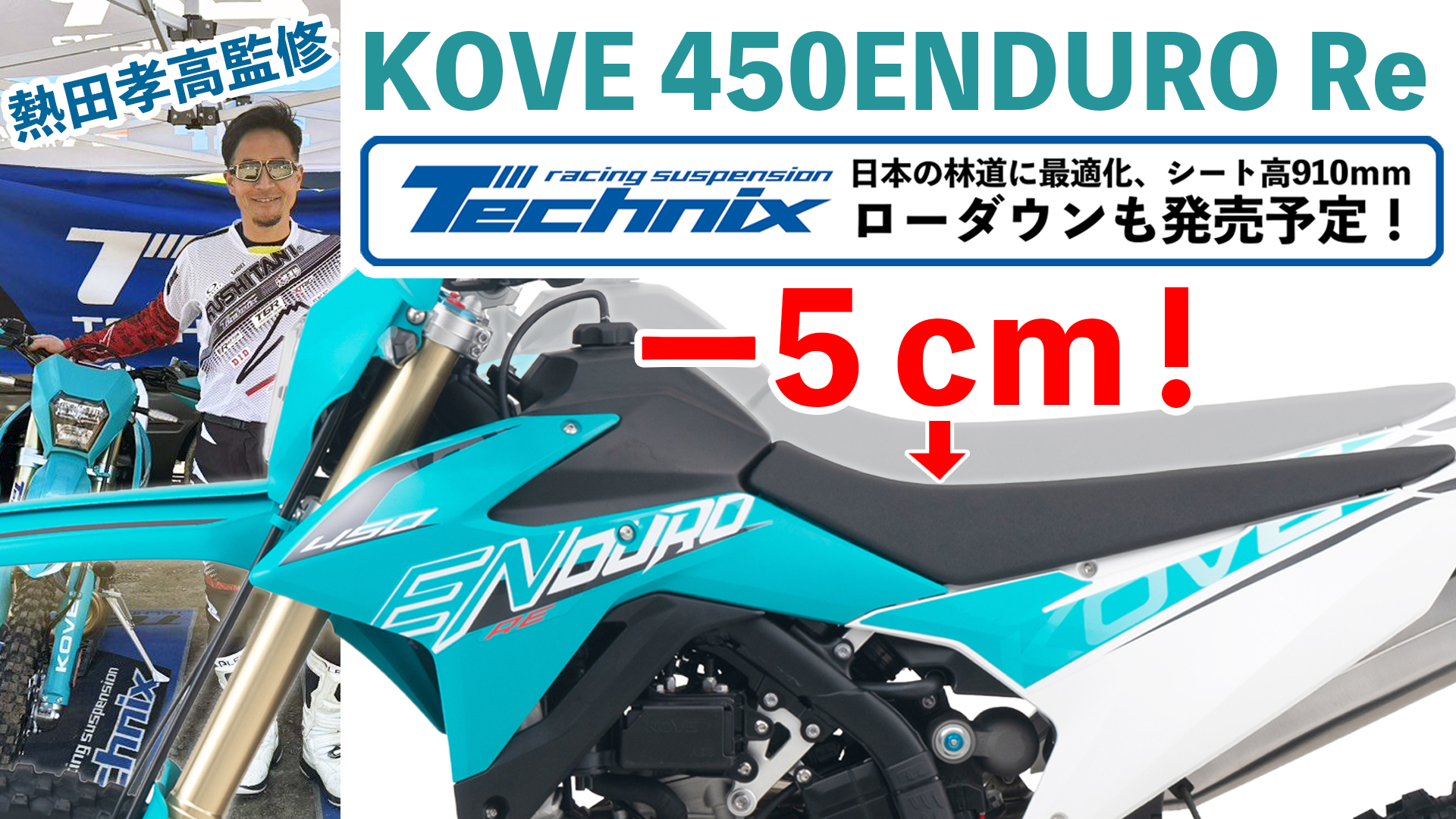 日本の林道に最適化したサスチューンを施した『 Technix ローダウン(シート高 ー5cmの910mm)』も設定。監修の熱田孝高氏によれば「そのままエンデューロレースにも出れる感じ!!」とのこと