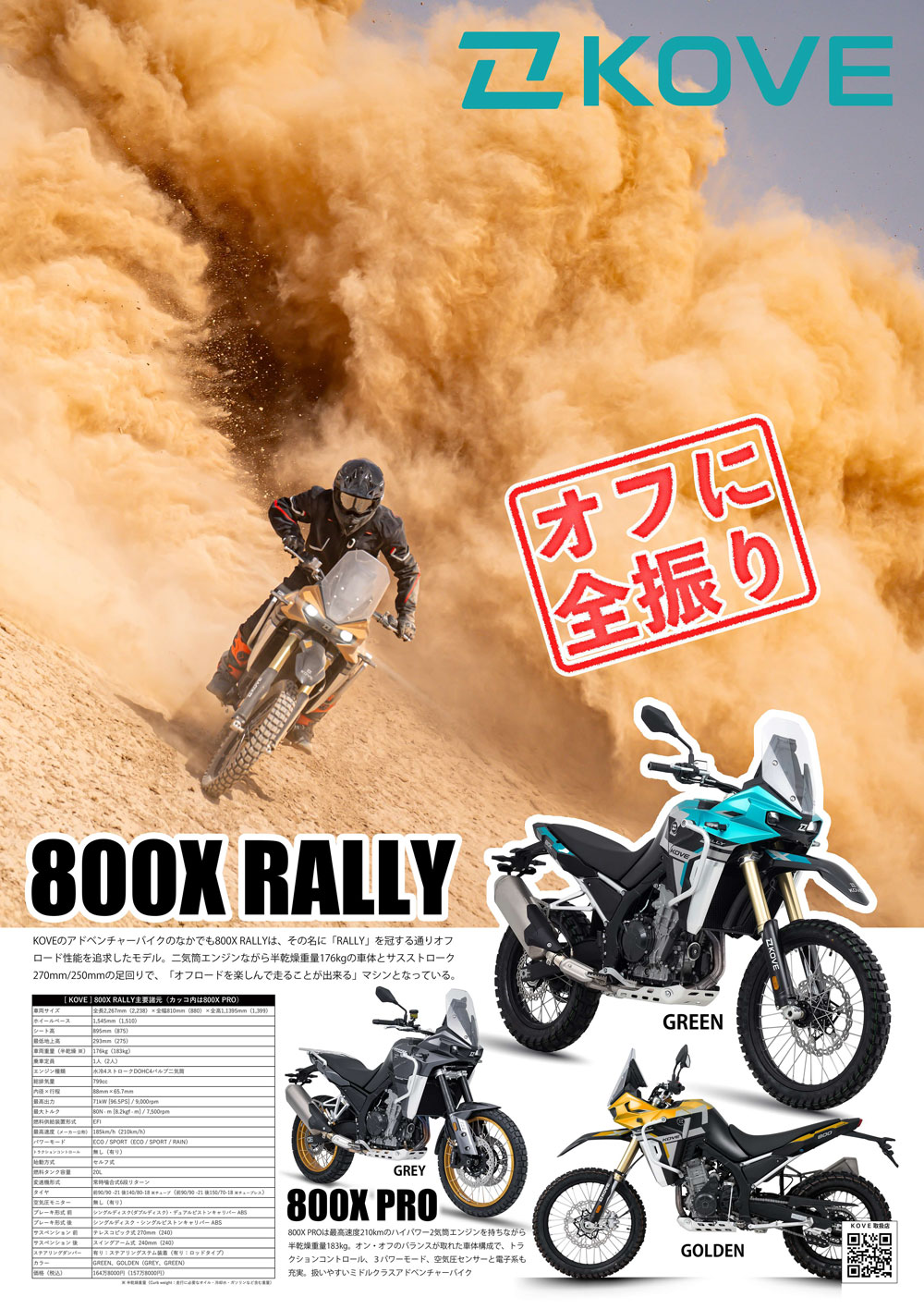 KOVE 800XPRO/RALLY予約受付中です。オフに全振り仕様のRALLYとON/OFFのバランスがとれた仕様のPROです。