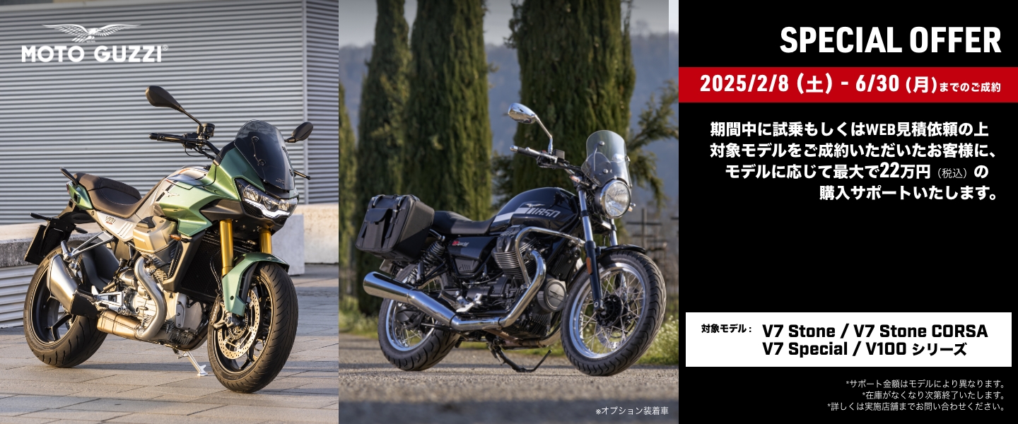 MOTO GUZZI NEWS TOPコンテンツ Moto Guzzi スペシャルオファー スターズトレーディング 2025年2月6日 ご来店、お問い合わせお待ちしております。 スターズトレーディング 042-795-9009 shop@starstrading.co.jp