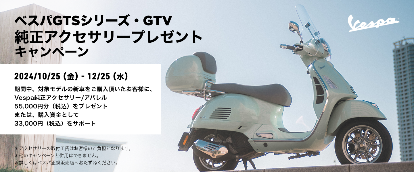 Vespa GTSシリーズ、GTV純正アクセサリープレゼントキャンペーン