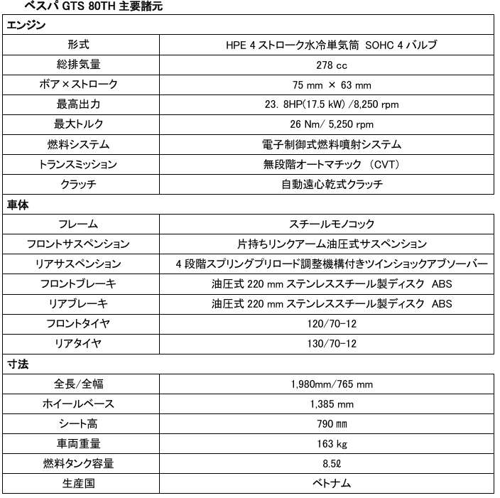 ベスパGTS 80THは、世界中で愛されているスクーターの歴史に名を刻むべく誕生した特別限定モデル