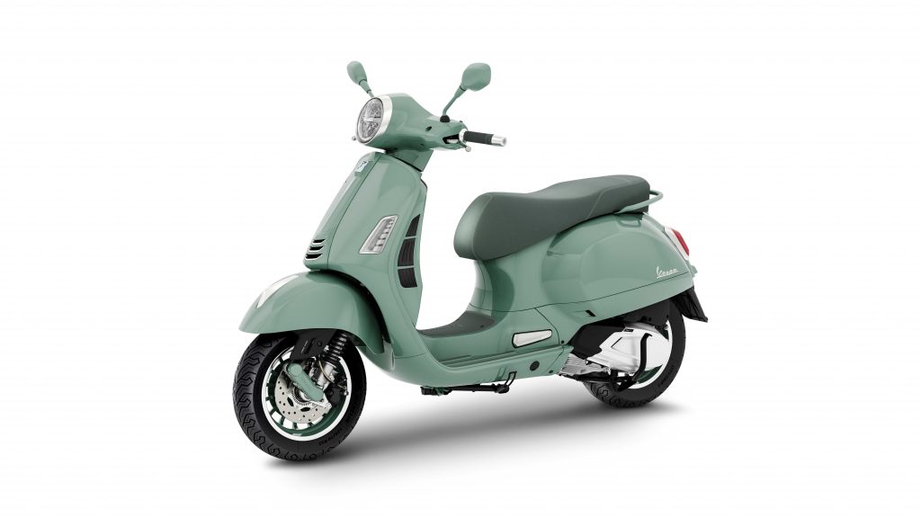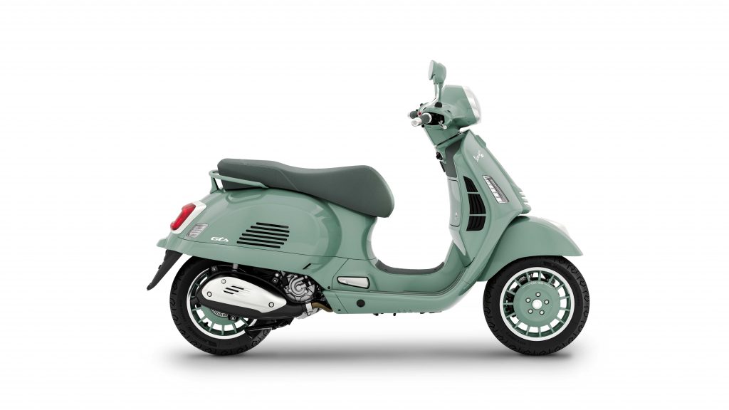 ベスパGTS 80 THの特別なカラーリングは、1946年の春を彷彿とさせる特別なパステルグリーンを採用